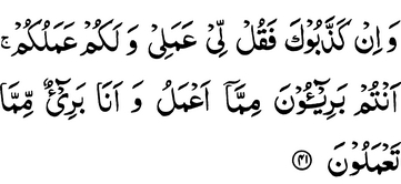 And if they belie you, then say: “To me is my doing, and to you is your doing, you are free from what I do, and I am free from what you do.”