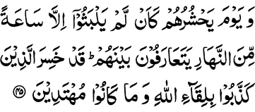 And the day He will assemble them, as though they had not tarried except an hour of the day, they will know one another.
