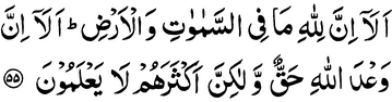 Does not all what is in the heavens and the earth really belong to Allah? Is not the promise of Allah true indeed? But most of them do not know.
