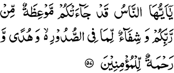 O you mankind! surely an Exhortation from your Rabb has come to you,— and a Healing for what is in the breasts,