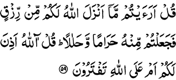 Say: “Have you seen what Allah sends down for you of provisions, then you make some of it unlawful and lawful?”
