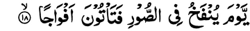 The day when blowing will be done into the trumpet, you will then come in hosts,