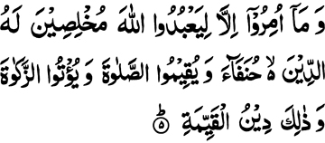 And they were not commanded but to worship Allah, being sincere to Him in obedience,— being upright, and establishing the Salat and paying the Zakat.
