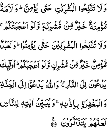 even though she allures you. And do not give in marriage to idolaters until they believe, while a believing slave is better than a polytheist
