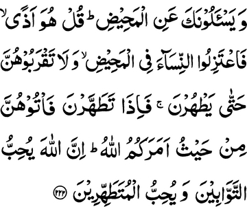 And they ask you concerning the menstruation. Say: “It is harmful; so keep aloof from women during the menstruation,