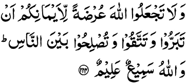 And do not make Allah the butt of your oaths for your acting righteously, and your practicing reverence,