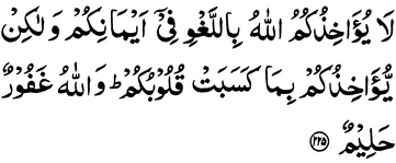Allah does not catch you for what is vain in your oaths; but He catches you for what your hearts have earned,