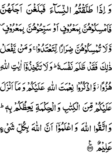 And when you divorce women and they complete their term, then retain them in kindness or set them free with kindness.