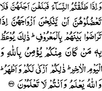 And when you divorce women and they complete their term, then do not hinder them from marrying their husbands,