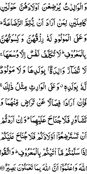 And the mothers should suckle their children for two full years, for him who wishes to complete the suckling.