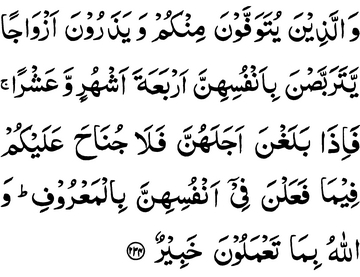 And those of you who die and leave wives behind, they should keep themselves in waiting for four months and ten.