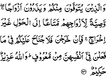 And those of you who die and leave wives behind, a legacy of maintenance of their wives for a year, without turning out.