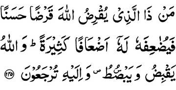 Who is there that will lend to Allah a goodly loan? Then He will double it for him many a doubling. For, Allah receives