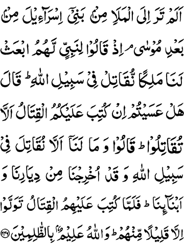 us a king that we may fight in Allah’s way.” He said: “May it not be with you that if fighting is prescribed for you, you will not fight?” They said: