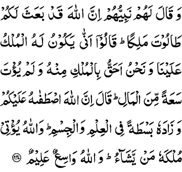 And their nabi said to them: “Allah has indeed raised for you Talut to be a king.” They said: “How can he have the kingdom over us,