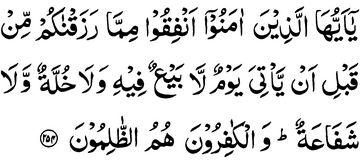 O you who believe! spend out of what We have provided you with before there comes the Day in which there is no bartering,