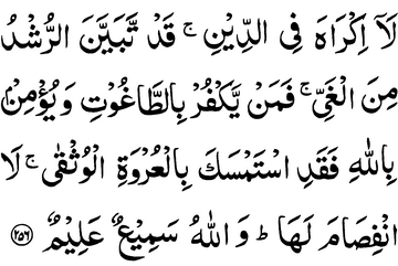 There is no compulsion in religion, the Right Path has indeed been made distinct from the wrong; so whoever