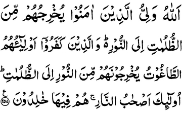 their patrons are the Taghuts, they bring them out of Light into the darkness; these are the companions of the Fire, in it they abide.