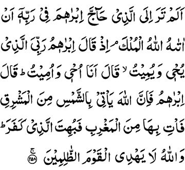 “But Allah surely brings out the sun from the East, so you bring it from the West.” Thus confounded was he who disbelieved. And Allah does not guide the unjust people.