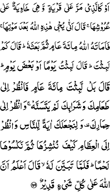 Or the case of him who passed by a township, and it had fallen over its roofs? He said: “How will Allah revive this after her death?”