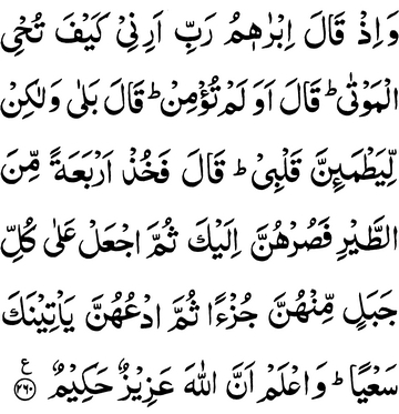 And behold! Ibrahim said: “My Rabb! show me how You give life to the dead.” He replied: “Do you not yet believe?”
