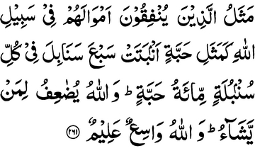 The Parable of those who spend their wealth in the way of Allah is like the parable of a grain which grows into seven ears,