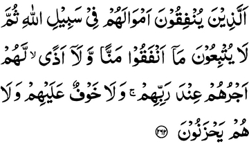 Those who spend their wealth in the way of Allah, then do not follow up what they have spent with obligation, nor injury;