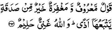 Fair speech and pardoning are better than charity followed by injury. And Allah is self-Sufficient, Forbearing.