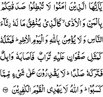 O you who believe! do not render void your charity by obligation and injury, like him who spends his wealth for