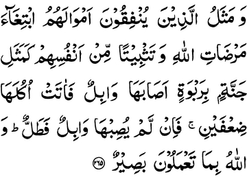 And the likeness of those who spend their wealth seeking the pleasure of Allah, and for the strengthening of their souls,