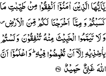 O you who believe! spend of the good things which you earn, and out of what We produce for you from the earth;