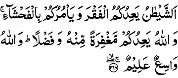The Evil-one threatens you with poverty, and bids you to indecency; while Allah promises you forgiveness from Himself and abundance.