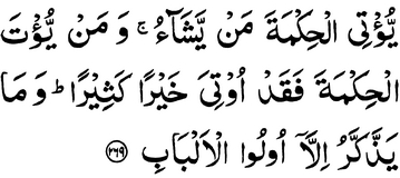 He grants wisdom to whom He pleases; and whoever is granted wisdom, he is then granted a great good indeed. And none mind except the possessors of understanding.