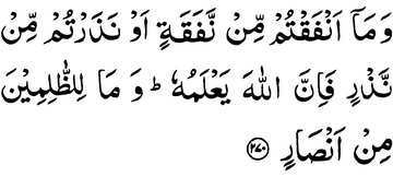 And whatever you spend in charity, or whatever vow you vow, then Allah invariably knows it. And for the wrongdoers there are no helpers.