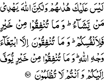 your own souls. And you should not spend aught but to seek the countenance of Allah. And whatever of good you spend, will be fully credited to you; and you will not be wronged.