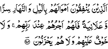 Those who spend their wealth by night and by day, secretly and publicly— for them is then their reward at the presence of their Rabb.