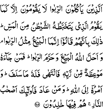Those who consume usury, they do not stand except like the standing of one whom the Evil-one has confounded with touch.