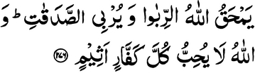 Allah will abolish usury, and He advances charity. And Allah does not love every ungrateful sinner.