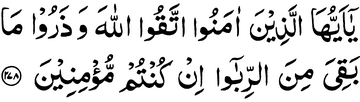 O you who believe! revere Allah, and relinquish whatever remains out of usury, if you are Believers.