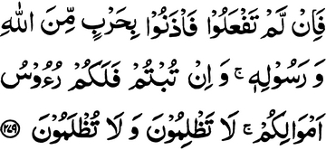 But if you do not do, then beware of war from Allah and His Rasul; but if you turn, then for you will be the capital of your sums.