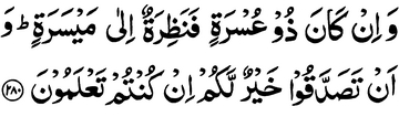 But if he be in indigence, then let there be postponement till ease. But if you make a charity it is better for you, if you only know.