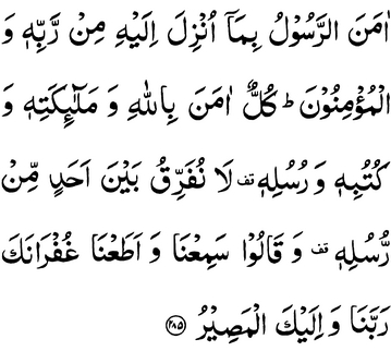 our Rabb! and do not impose upon us that for which no strength have we. Therefore pardon us; and grant us protection; and be kind to us. You are our Patron; therefore help us over the Unbelieving people.”