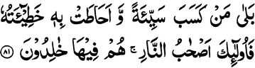 Yea, whoever earns evil and his wrong-doings encompass him, these then, are the fellows of the Fire; in it they abide.