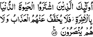 These are those who have purchased the life of this world for the Hereafter. No lightening of the punishment will then be upon them, nor will they be helped.