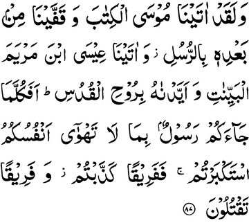 Is it then that every time a rasul comes to you with what your souls do not desire, you behave arrogantly? So some you belied, and some others you would slay.