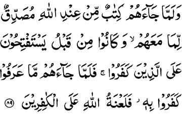 for victory over those who disbelieved— yet when there came to them which they recognized, they disbelieved in it. So the condemnation of Allah be upon the Unbelievers.