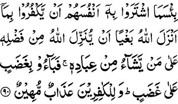 Evil is that for which they have bartered their souls, that they deny what Allah has revealed, out of envy— that Allah, out of