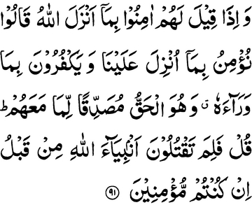 And they reject that which has come after that, while it is the Truth confirming what is with them. Say: “Why did you then slay nabis of Allah before? If you be believers.”