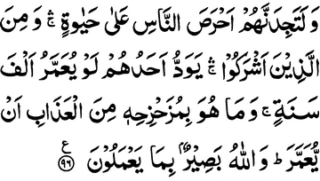 And you will indeed find them the greediest of mankind for life— and even than those who associate. One of them would wish if
