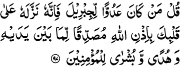 Say: “Whoever is an enemy to Jibril”— for surely he it is who has brought it down on your heart— with the permission of Allah,